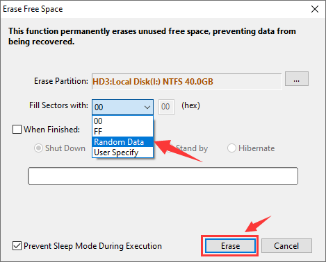 Erasing free space on hard drive overwrites lost files, which does not disturb existing files on the disk. This solution applies to those who just want to overwrite lost files only in order to make lost data unrecoverable. For instance, you've formatted hard drive and reinstalled operating system, what you need to do is erasing all disk area except system; or you've deleted sensitive using Shift + Delete, and want to make sure they are no longer recoverable without affecting existing data.
